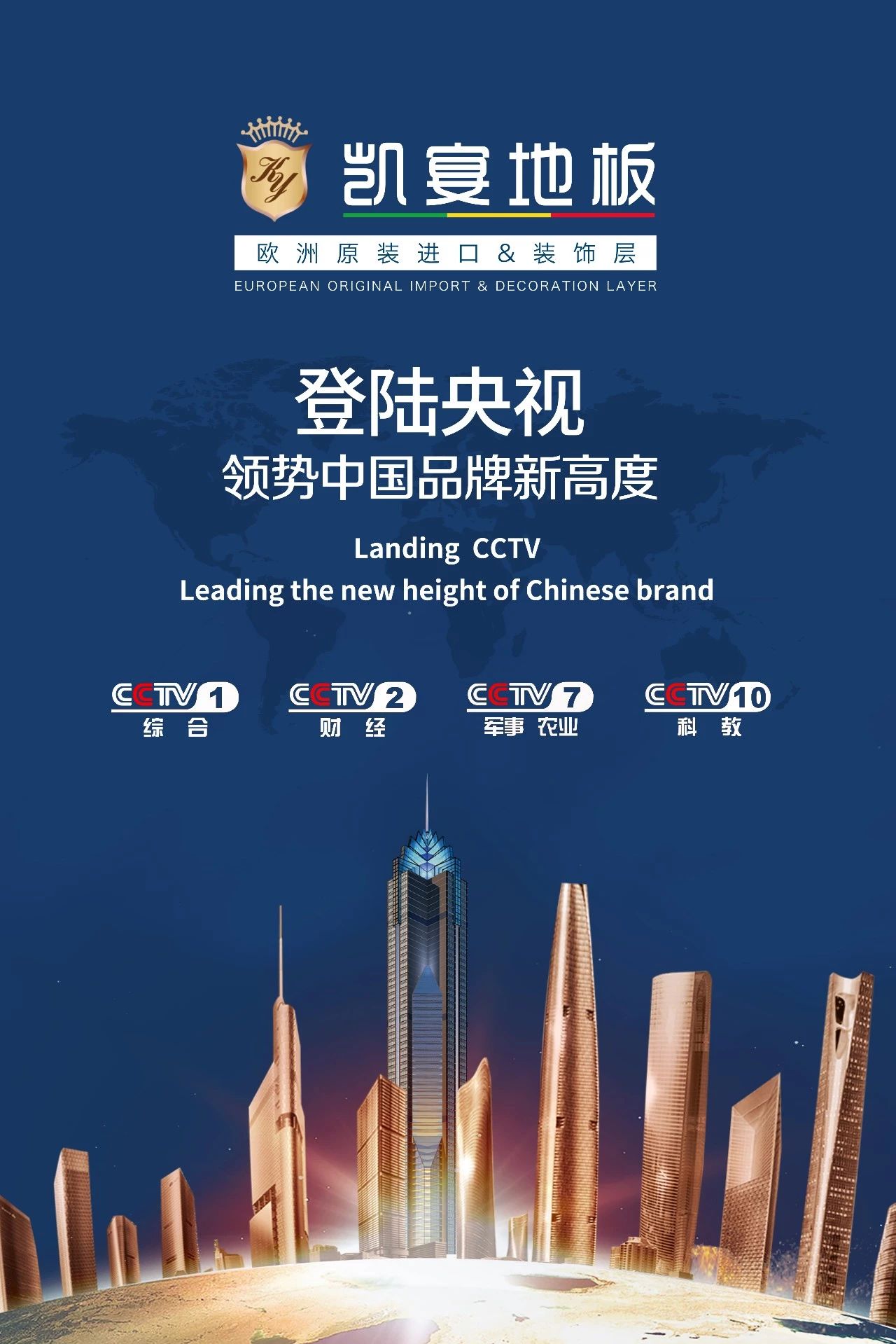 凯宴地板的粉丝们一定要知道,凯宴地板自8月4日起,开始登陆CCTV1、CCTV2、CCTV7、CCTV10央视广告并开始展播了。(首播时间是在8月4日18:50—18:55在CCTV1)以后基本上每天都能看到凯宴地板活跃在央视的身影,见证凯宴地板强大的品牌力量!