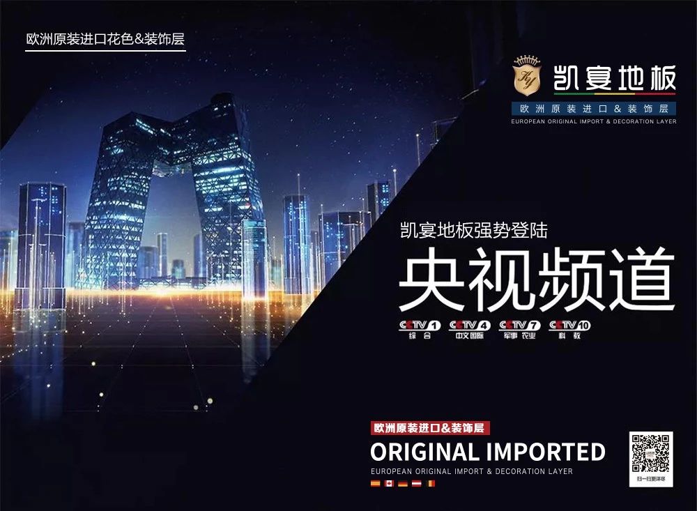 凯宴地板的粉丝们一定要知道,凯宴地板自8月4日起,开始登陆CCTV1、CCTV2、CCTV7、CCTV10央视广告并开始展播了。(首播时间是在8月4日18:50—18:55在CCTV1)以后基本上每天都能看到凯宴地板活跃在央视的身影,见证凯宴地板强大的品牌力量!